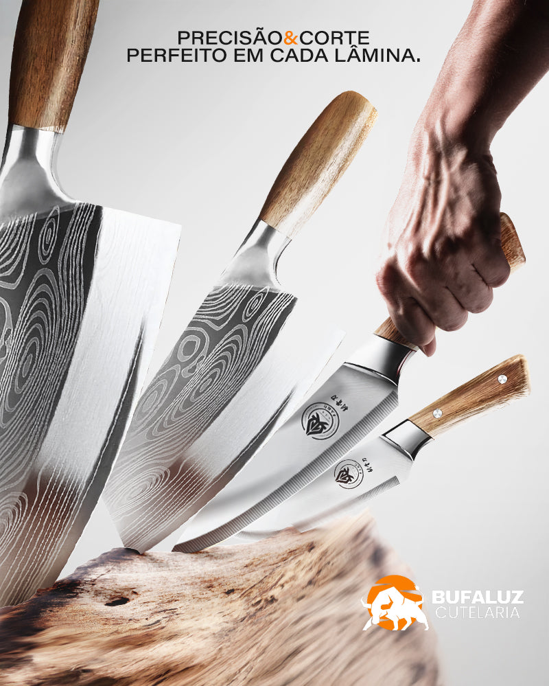Descubra a Bufaluz Cutelaria! Nossa paixão pela excelência em facas cresce a cada dia. Assim como o bufalo, símbolo de poder e resistência, nossas facas são projetadas para enfrentar qualquer desafio. Explore nossa coleção e experimente a qualidade e a confiabilidade que só a Bufaluz Cutelaria pode oferecer. Bem-vindo!